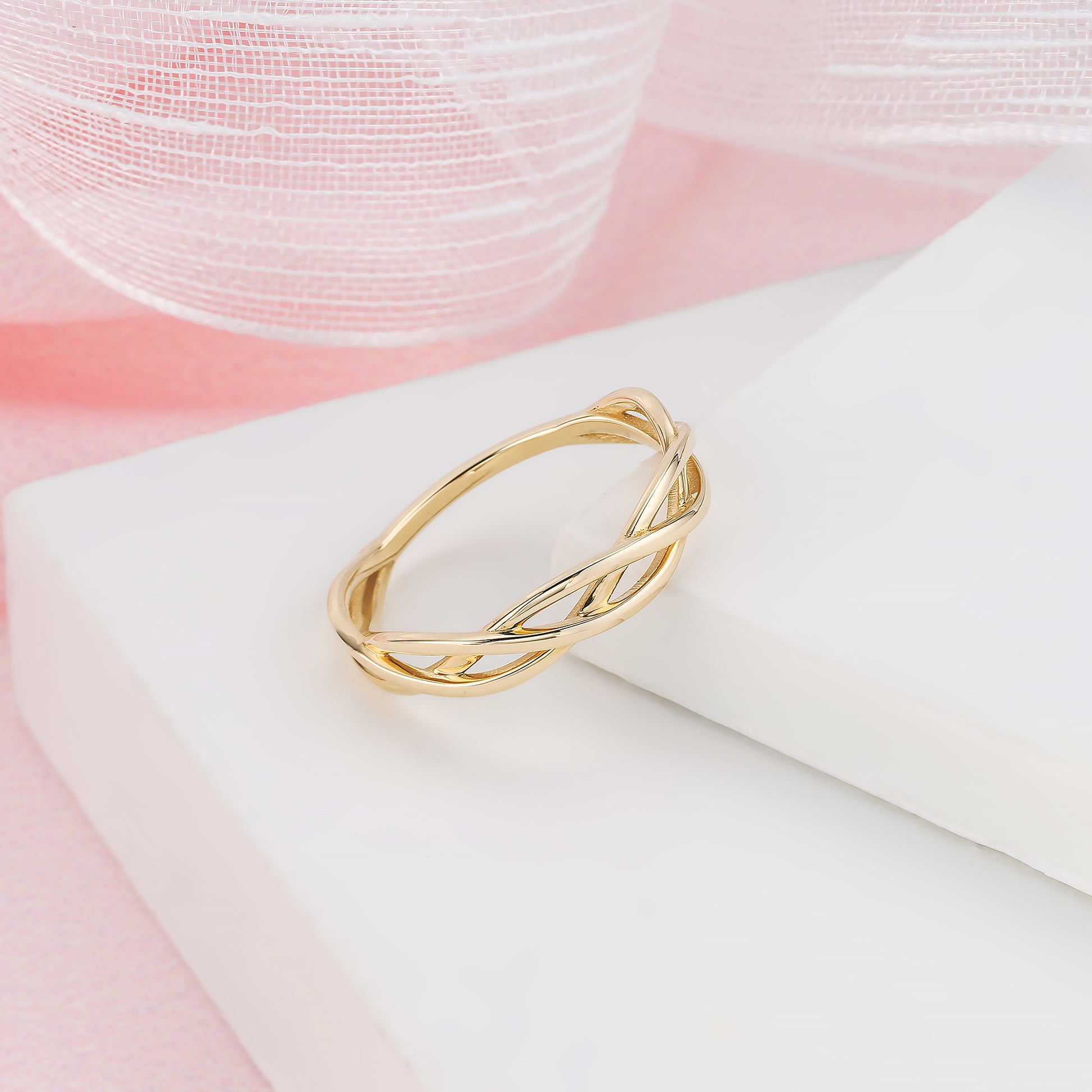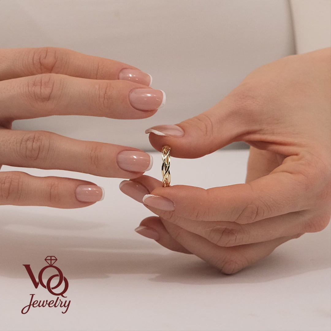 A sleek, interwoven knot band with a softly braided twist—clean and minimal from afar, with beautiful detail up close. The open weave adds dimension while keeping the profile light and comfortable for everyday wear. Made to order in your choice of yellow, rose, or white gold, this knot ring stacks effortlessly with slim bands or pairs beside an engagement ring, and it also wears beautifully on its own as a modern wedding band or promise-style ring.
